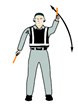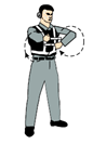 왼팔은 아래쪽을 가리키며 오른팔은 머리 위로 수직으로 세웠다가 옆으로 수평위치까지 내리는 동작을 반복한다. | |
