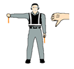 한 팔을 앞으로 뻗어 눈높이까지 들어 올린 후 손짓으로 부르는 동작을 한다. 야간 - 막대를 사용하여 동일하게 움직인다. |
