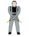 몸의 앞쪽에서 유도봉을 쥔 양팔을 아래쪽으로 교차시킨다. | |