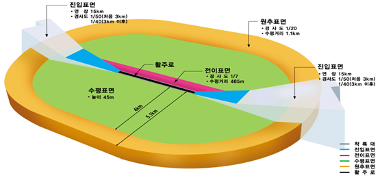 | 착륙대 | 길이 | 활주로 시작선 및 활주로 끝선(정지로가 있는 경우에는 정지로 끝선)에서 연장한 거리 | 비계기용 | 계기용 | 60m 이상 |