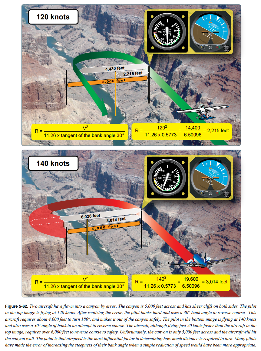 가지각색의 bank angle로부터 발생하는 하중 계수를 알면 두 가지 유형의 심각한 사고를 예방하는데 도움이 된다: