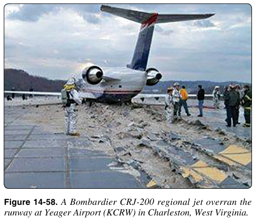 • January 2010 - Bombardier CRJ-200 regional jet이 Yeager Airport(KCRW)에서 활주로를 overrun 하였다. [그림 14-58]