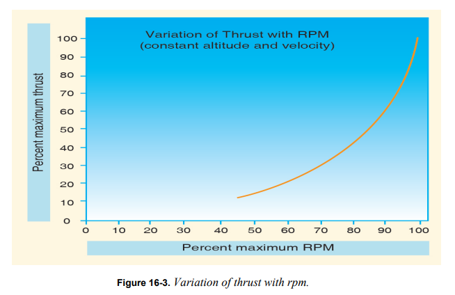 제트엔진은 85% ~ 100% 범위에서 가장 효율적으로 작동한다. idle rpm(대략 55% ~ 60%)에서 제트엔진은 비교적 적은 양의 추력을 생산한다. rpm을 90% ~ 100%로 증가하면 추력이 총 70%만큼 증가할 수 있다. [그림 16-3]