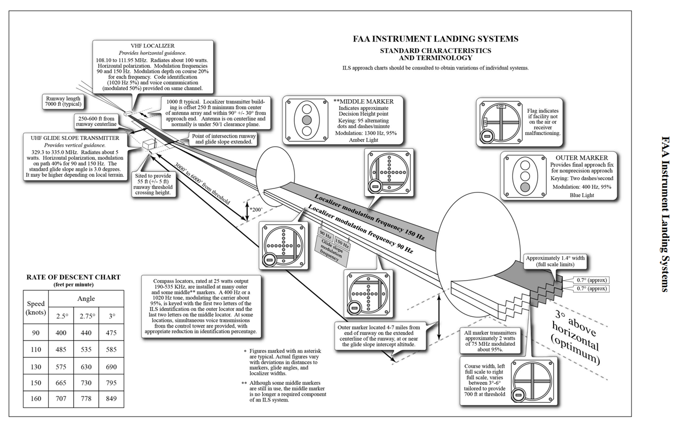 7. 조종사는 착륙 외장 상태일 때 만들어지는 glide slope 안테나와 main gear의 수직 높이 차이를 알고 있어야 하며 만약 차트에 게재된 TCH가 활주로 시단에서의 wheel crossing height가 충분하지 못할 수 있음을 나타낸다면 이에 따라 DH에서 하강 각도를 조정할 계획을 수립해야 한다. 적절한 wheel crossing height는 항공기 유형에 따라 대략 20 ~ 30ft이다.