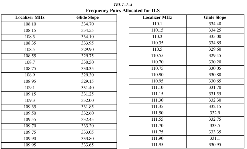 h. ILS Frequency(표 1-1-4 참조.)
