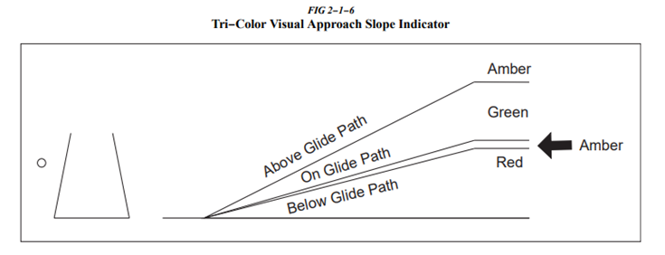 1. tri-color VASI는 하나의 빛으로 구성되기 때문에 다른 빛들과 혼동될 수 있으므로 조종사는 등화를 제대로 식별하도록 주의해야 한다.