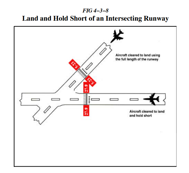 a. LAHSO는 “Land and Hold Short Operations.”의 약어이다. 이러한 운영은 intersecting runway, intersecting taxiway, 혹은 그 외 특정 지점에서의 착륙 및 대기를 포함한다. (그림 4-3-8, 4-3-9, 4-3-10 참조.)