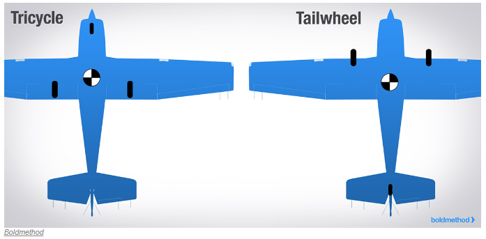 main landing gear를 기준으로 비행기의 뒷부분 측면 면적은 앞부분 측면 면적보다 더 넓다. main wheel은 중심점의 역할을 하며 이 지점의 뒷부분은 측풍에 노출되는 넓은 측면을 가지기 때문에 비행기는 바람을 향하여 weathervane 하려는 경향을 보인다.
